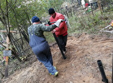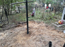 Нам же необходимо было привести территорию могилы в полный порядок. Приступая к работе, мы первым делом вкручиваем определяющие фундамент сваи.