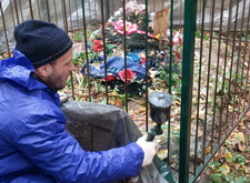 Обустройство с нуля могилы с очень высокой оградой. Земля на этом кладбище очень хорошая для различной растительности и в любое теплое время года здесь всегда растут сорняки, поэтому открытая земля на подобных кладбищах – это причина огородных работ на могиле, когда бы вы не пришли. Исходное состояние могилы далее.